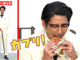 ケンタッキーフライドチキン新商品発表会&試食会が開催。会場となった六本木に、カーネル・サンダースに扮した、賀来賢人さんが登場しました。 新商品『ケンタの鶏竜田バーガー』についてプレゼンを求められる…