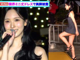 TWICE・MINA、限界ミニ丈ドレスで登場!しなやかな美脚あらわに